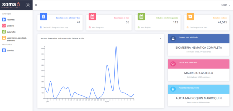 Es un sistema para laboratorios de análisis clínicos con expediente por paciente, administración por sucursales, control de ventas, envió de resultados por correo electrónico y WhatsApp. Contamos con excelente soporte técnico y ofrecemos ajustes para adaptarnos a la forma de trabajo de cada cliente.